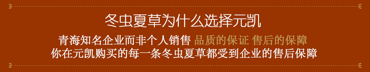公司專業(yè)致力于青藏高原野生冬蟲(chóng)夏草銷售、采收、精選包裝和現(xiàn)代化生產(chǎn)、研發(fā)等,并且在青海玉樹(shù)西藏那曲設(shè)立了采購(gòu)站,專門(mén)采購(gòu)地道的野生冬蟲(chóng)夏草,充分保證了產(chǎn)品的品質(zhì)。元?jiǎng)P長(zhǎng)期向國(guó)內(nèi)眾多著名藥材經(jīng)銷商、港澳臺(tái)以及東南亞中藥材采購(gòu)商供應(yīng)冬蟲(chóng)夏草,多次被省、市、縣授予多種榮譽(yù)稱號(hào)“青海省知名商標(biāo)”、“青海省誠(chéng)信單位”、“青海省名優(yōu)企業(yè)”、“守合同重信用企業(yè)”等。